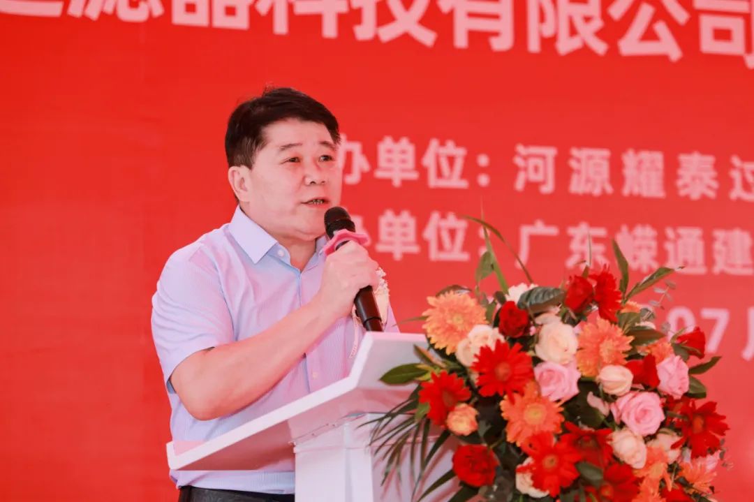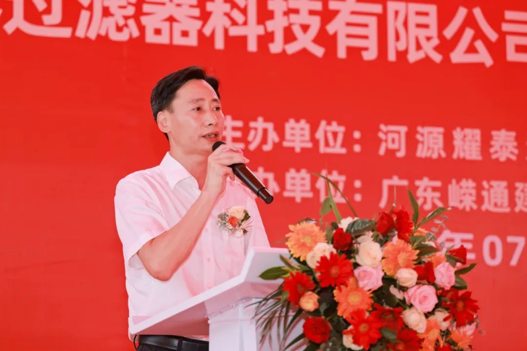 广东耀泰过滤器科技有限公司董事长梁绍邱先生对莅临现场的各位领导、嘉宾和朋友表示衷心的感谢。并介绍了广东耀泰过滤器科技有限公司的基本情况,耀泰科技成立于2005年,是一家专业从事各种机械工业过滤器研发、生产、销售、服务于一体的国家级高新技术企业,广东省科技创新型中小企业。现已获得国家技术专利30多项,并通过ISO/IATF16949:2016国际质量体系认证。耀泰科技一路风雨,一路坚持,走过了18个年头,离不开大家的大力支持。耀泰科技(河源)产业园一期项目建设面积约37000平方米,争取在今年年底顺利封顶投产。